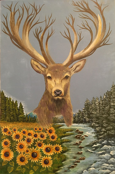 This deer is one of these old canvases that carries a piece of history. Underneath, there is a layer of one of the first animals I ever painted with acrylics.